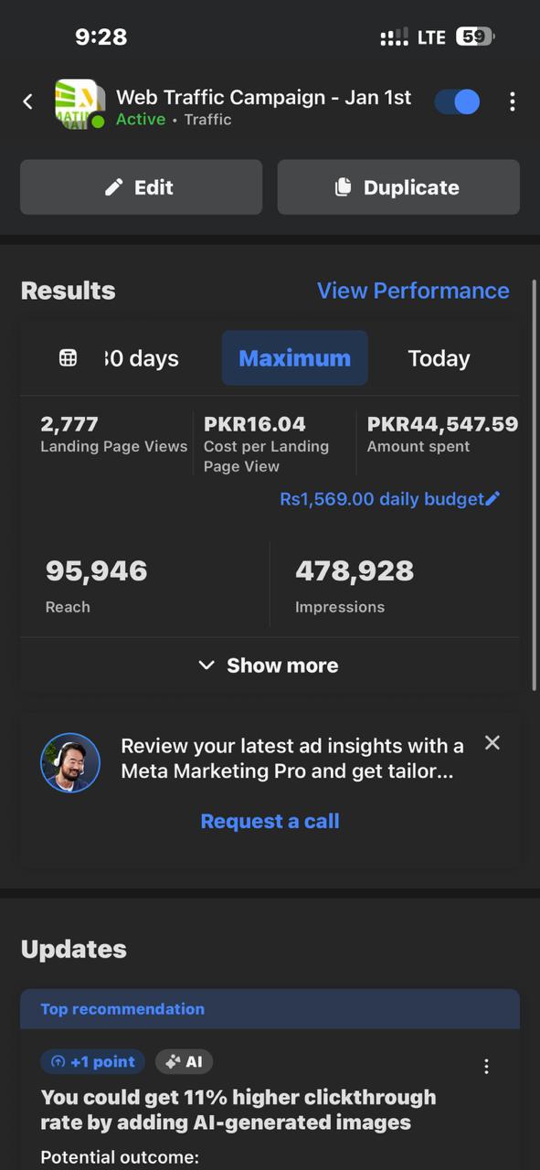 This shows that with the right approach, construction and estimation businesses can turn underperforming ads into a predictable lead generation system. Check the screenshots of the results below. First screenshot shows results of awareness campaign and second one shows results of leads campaign.